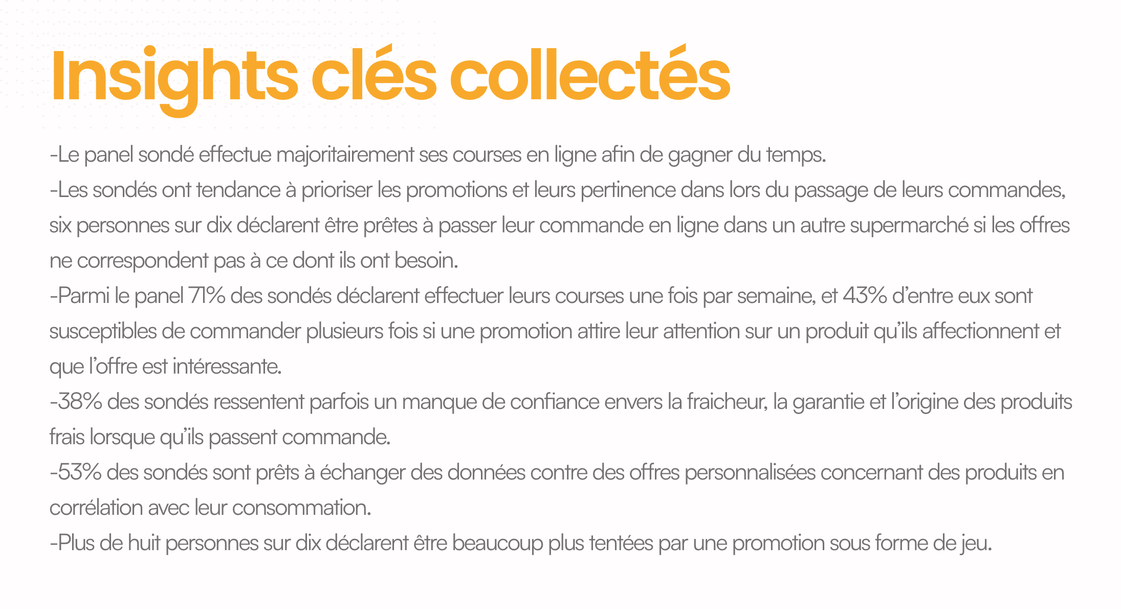 Lors de la phase de recherche, plus de huit personnes sur dix déclarent être beaucoup plus tentées par des promotions sous forme de jeu, c’est pourquoi en échange de données utilisateurs et du consentement à analyser leurs paniers réguliers, nous offrons aux utilisateurs la possibilité de jouer pour gagner la valeur de leurs paniers.